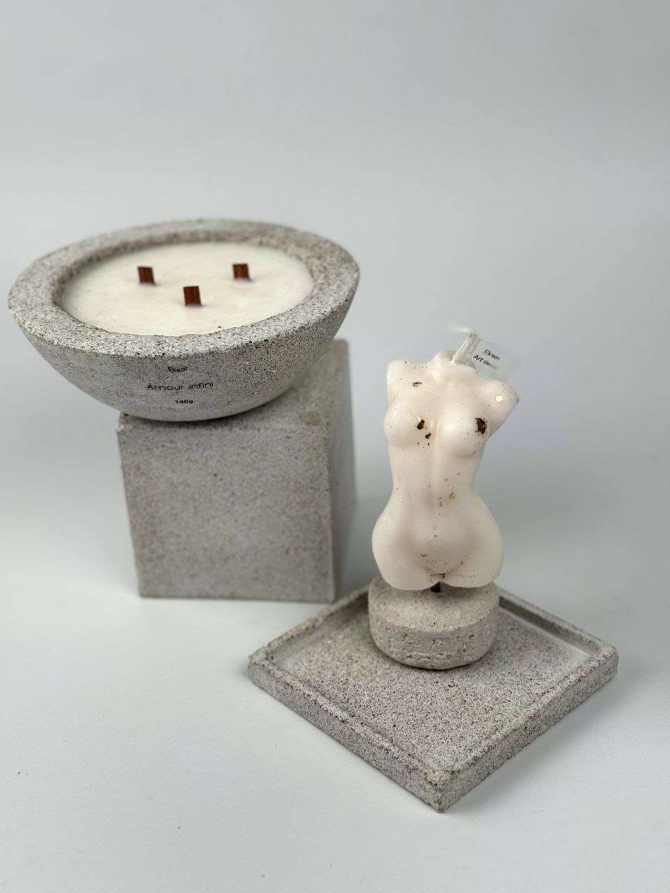 Laissez-vous envoûter par la danse des flammes, l'élégance du béton, et l'arôme captivant de nos bougies faites à la main.